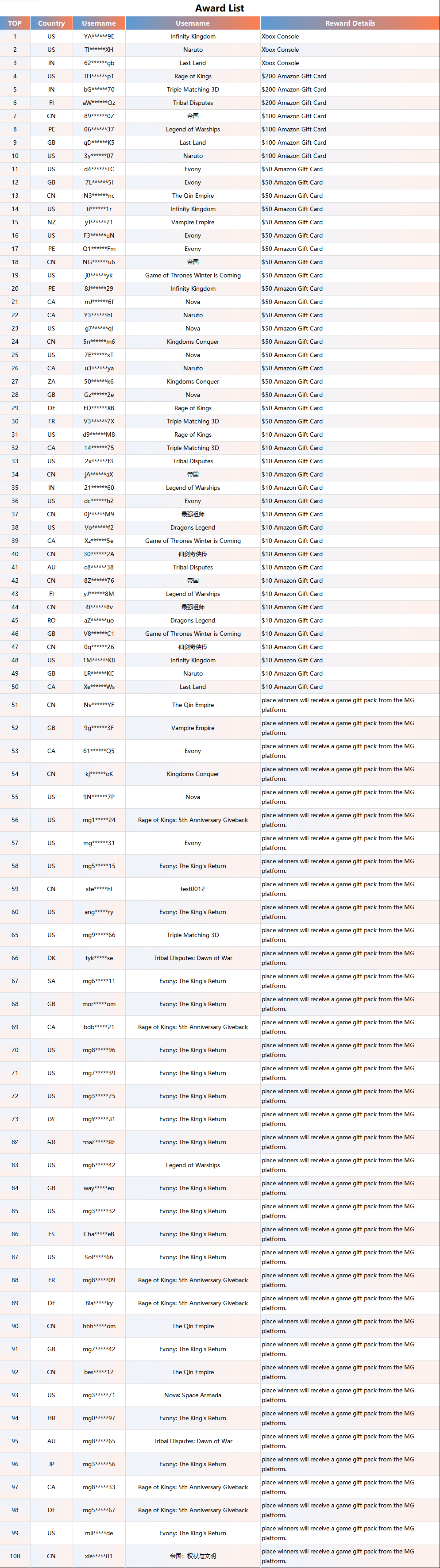 A total of 33,308 players joined the event, including 100 players who won the Recharge Ranking rewards and 295 players who won the Points Lottery rewards.