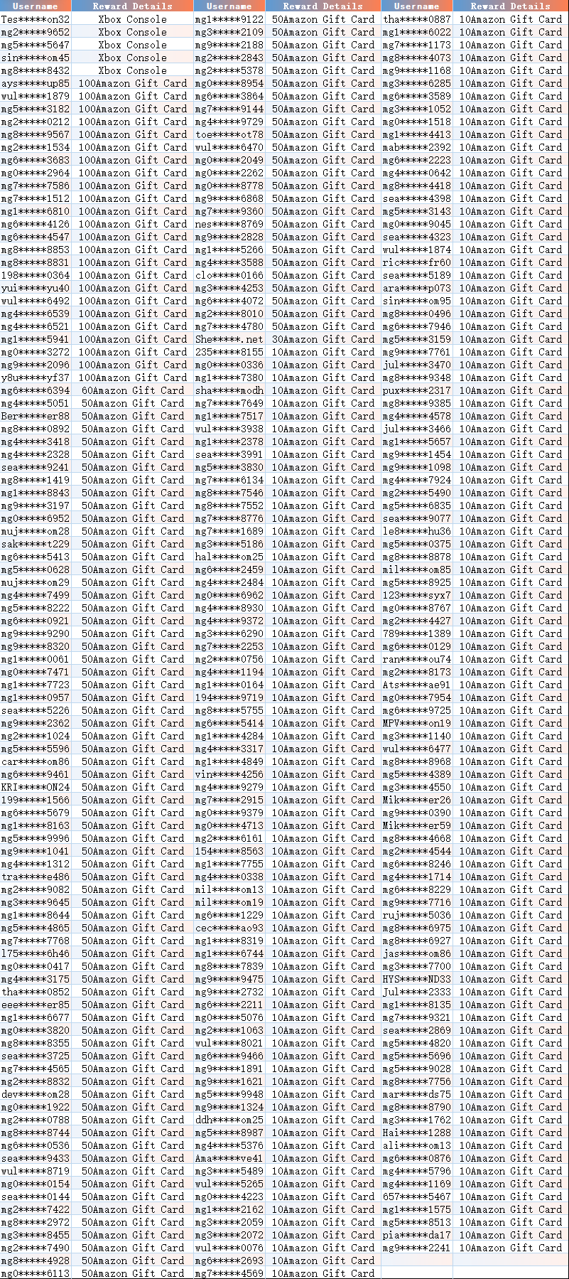 Physical Rewards (Xbox & Shopping Cards)