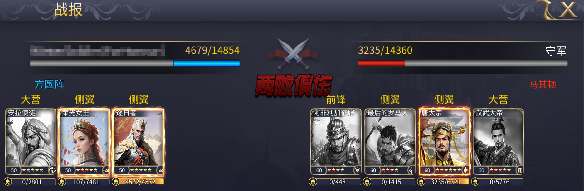 Two battle reports that often appear in the same battle, one indicating victory and the other indicating defeat. The criteria for determining victory in the game are as follows: