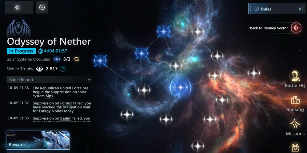 Occupy 1/2/3 solar systems in the Odyssey of NEther event