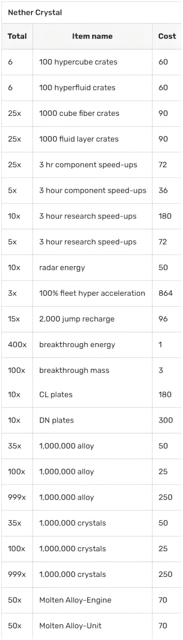 This event also comes with a shop, which items can be obtained with nether crystal. The shop features: