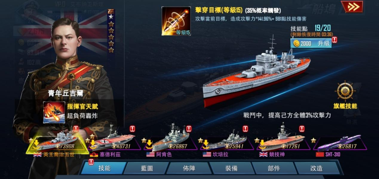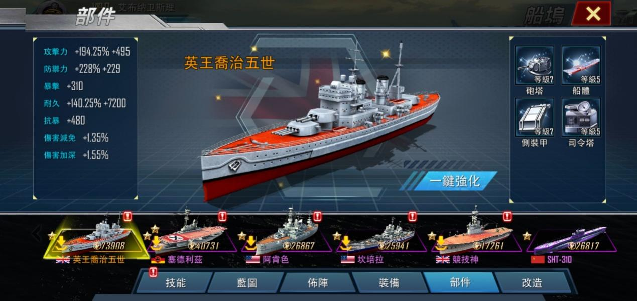 每只战舰都需要8-9个部件来维持战舰的不同性能,例如炮塔用来射击敌方指挥官和海员,隐形装置用来隐藏潜艇的一系列行动等等。因此,用已有资源来强化战舰的各个部件,能成为制胜敌人的关键哦!
