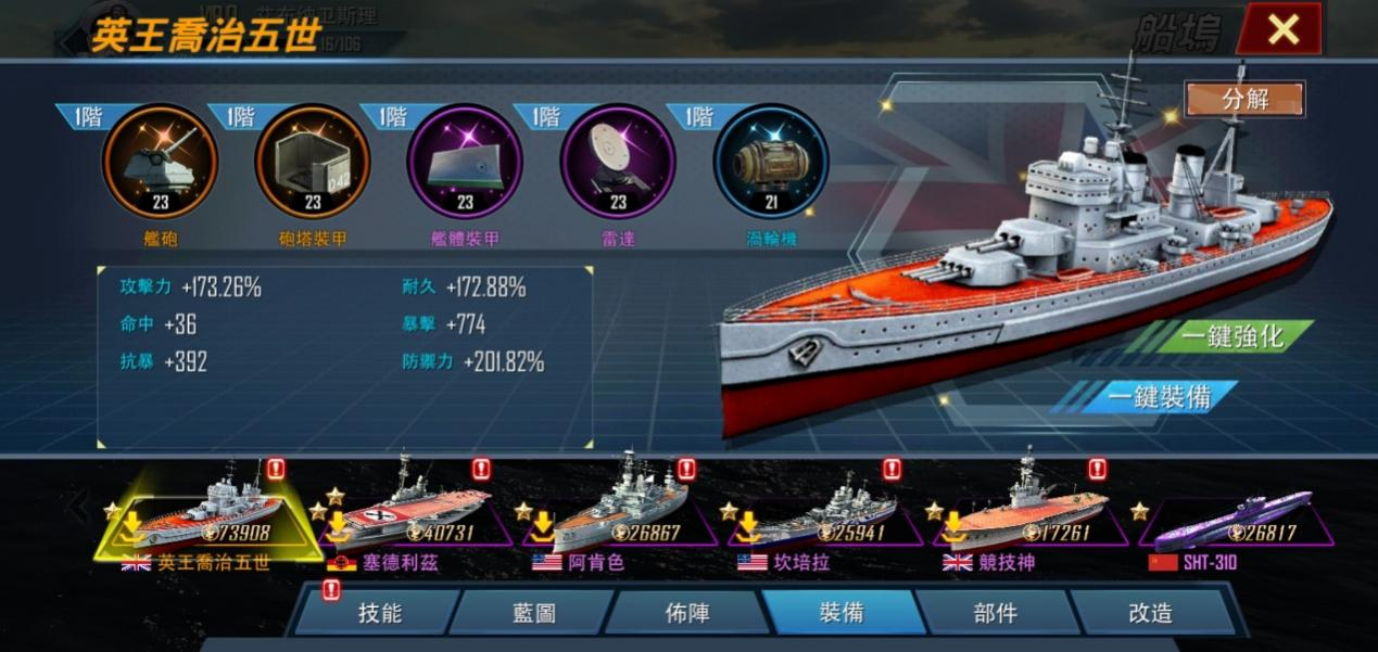 想要提升战舰的战斗力,必不可少的一部分就是升级和强化战舰装备。升级装备可大幅提升战舰的攻击力、防御力、耐久度等属性。当然,装备升星和重铸也有提高战舰属性的作用。