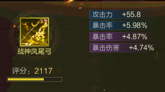 因为刀武(攻击+暴伤)和弓武(攻击+暴击率)输出武将都有用,出货概率就从16.6%(6选1)提升到了33.3%(6选2),剩下就看随机属性怎么出。