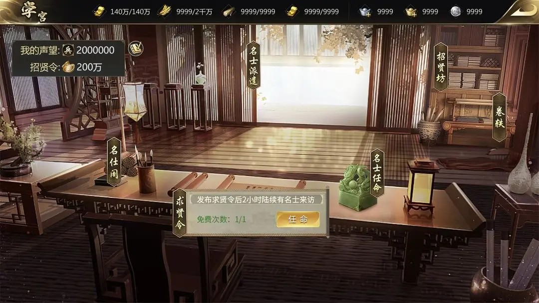 • 在学府中,可派遣名士对卷帙进行研习,需要消耗同名卷帙残卷,研习后将会获得【卷帙技能】