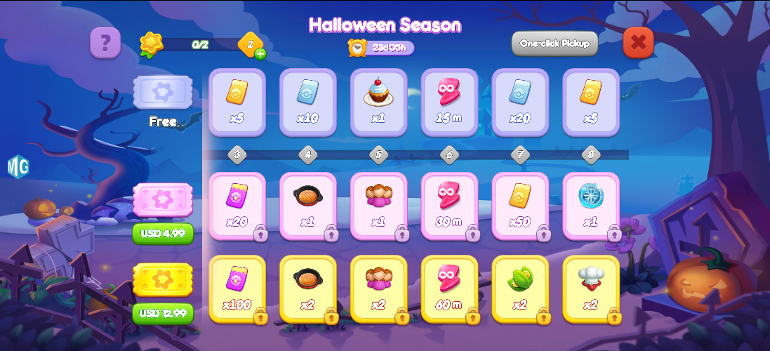 · Upgrade your Halloween Pass to unlock luxurious rewards, mysterious items, and themed decorations!
