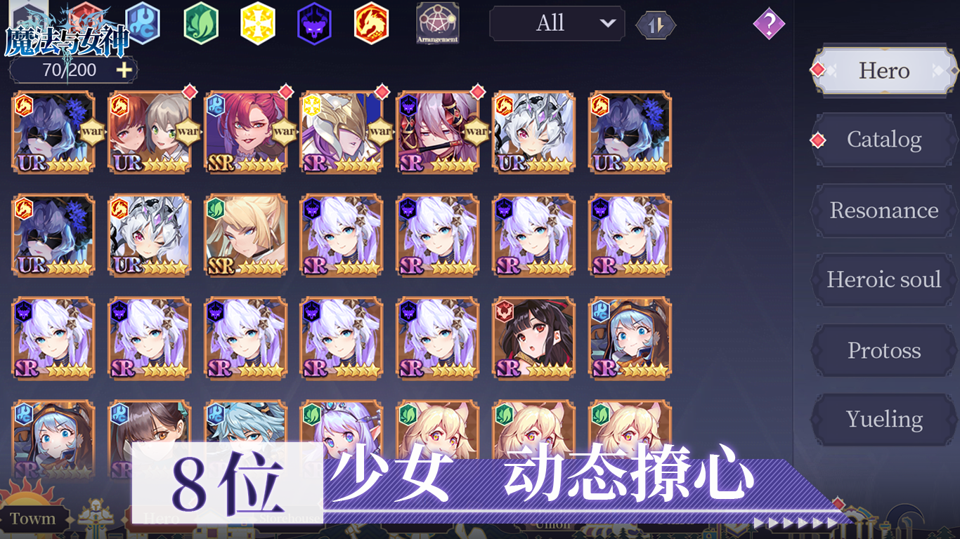 在异世界中,女神是你最强大的伙伴。她们来自不同阵营,拥有不同属性(光、暗、风、火、水、土)与专属技能。