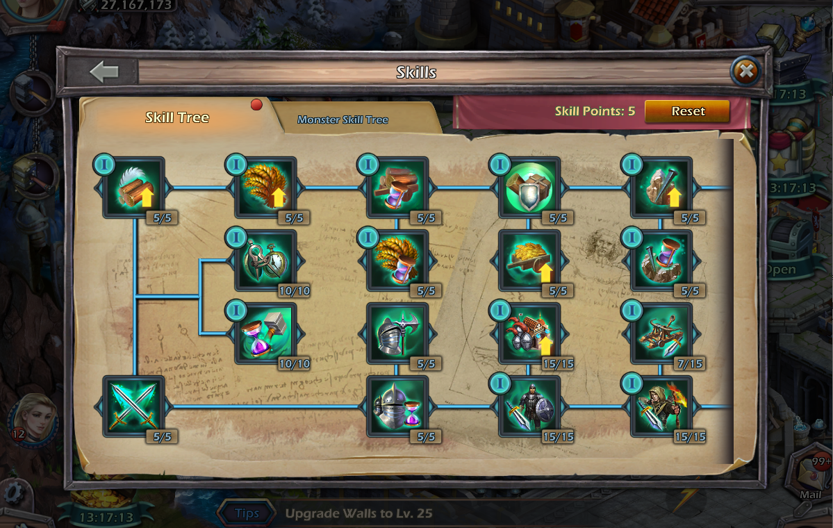 The lord can upgrade the combat power by upgrading the skill points and learning the content in the skill tree and the monster skill tree. It should be noted that the content in the skill tree needs to learn a certain number of points to unlock the next learning content. It is also possible to obtain the combat power by forging materials and forging advanced equipment.