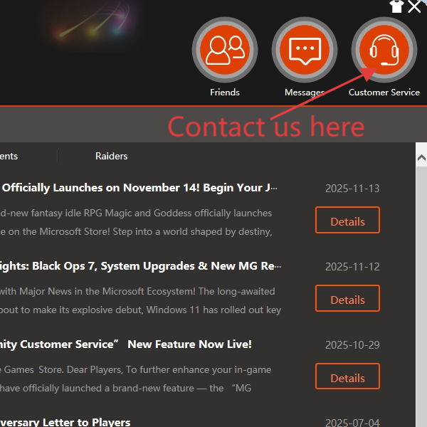 All customer support replies, system notifications, and official announcements are consolidated into the in-game MG Community Message Center, making it easier than ever to review important messages.