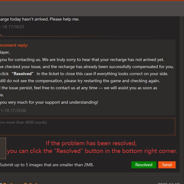 ![]() If the issue is resolved, tap “Resolved” in the lower-right corner to rate our support. |