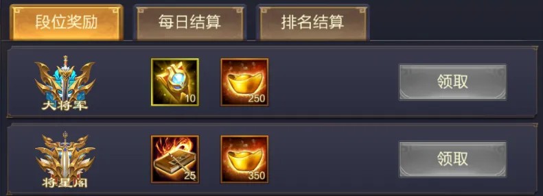 勇冠三军以将星阁段位为界限,采用两种不同的晋升方法。