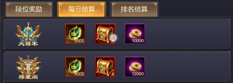 若挑战期间有主公能够获取到段位指定将星数量,则无需等待当天21点结算直接晋级。