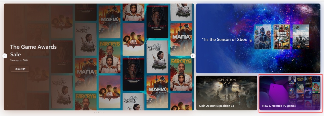 New & Notable PC Games 是 Microsoft Store 面向近期上线、具备玩法特色与市场潜力的 PC 新游设立的重要展示专区。