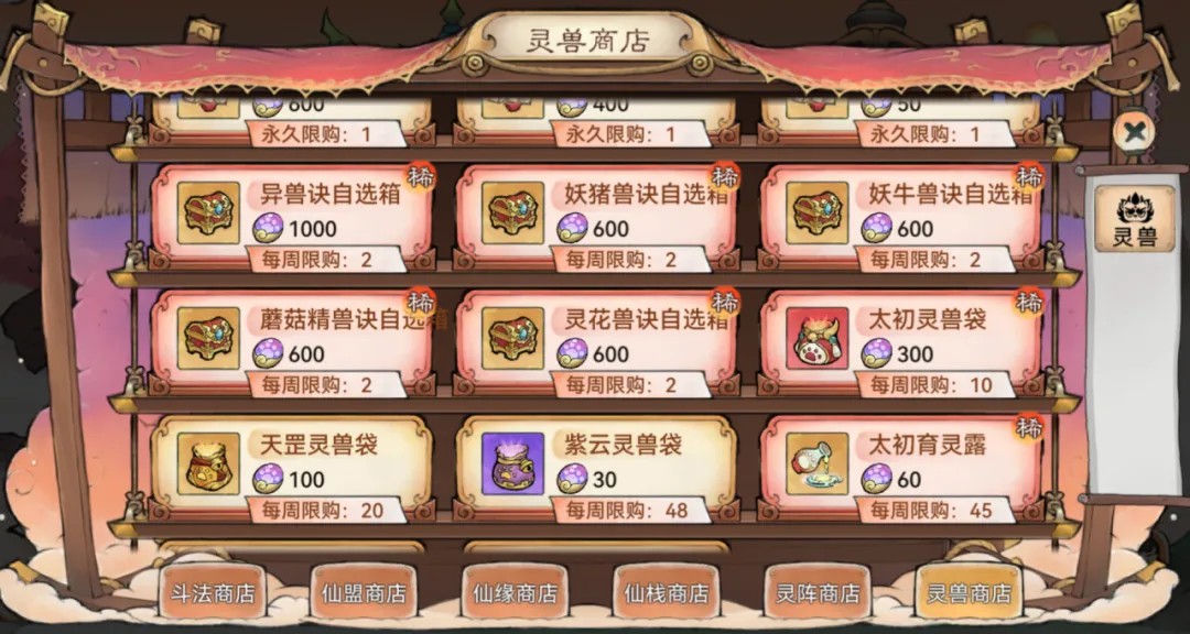 兽魂晶可在灵兽商店内兑换灵兽相关的各种珍稀道具。