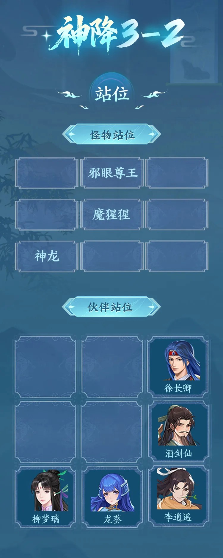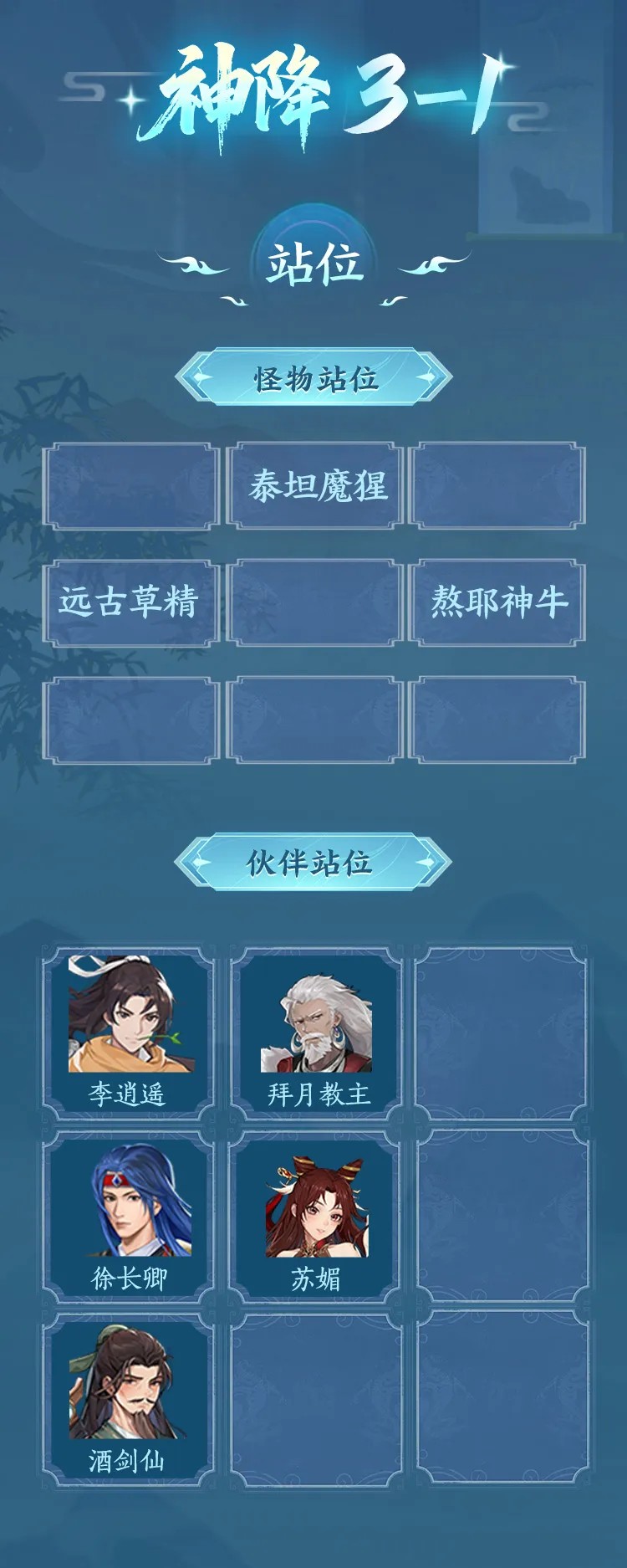 一般第一回合苏媚魅惑大猩猩到就可以通关了,毕竟对方都是单体伤害,前排抗住,有酒剑仙存活保持输出就可以顺利完成关卡任务。