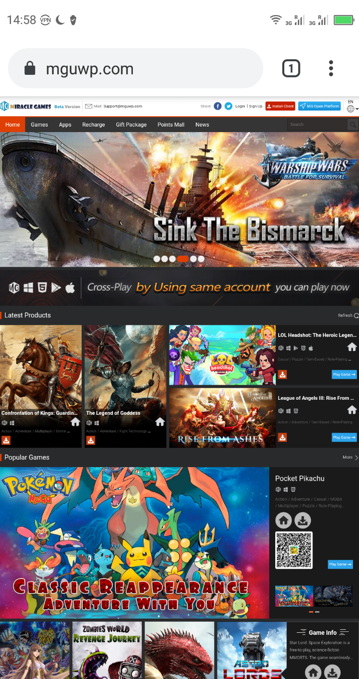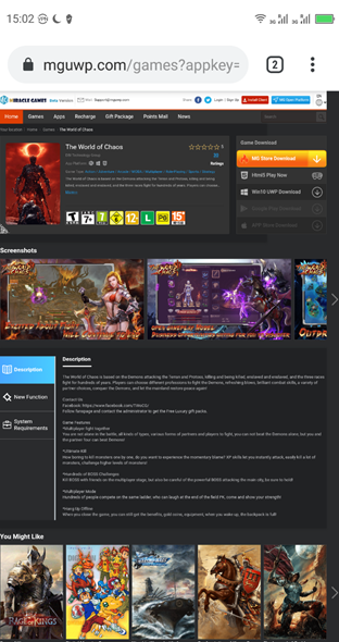 • 或直接在浏览器导航栏键入 https://www.mguwp.com/games?appkey=7231CE22D6